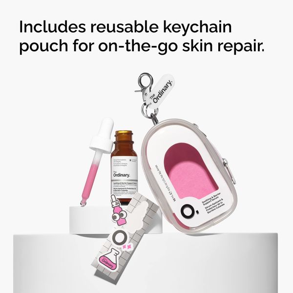 The Soothing & Barrier Support Serum 15ml setincludes a reusable keychain pouch for fast skin repair on-the-go. Customise your Soothing & Barrier Support Serum pouch with complimentary stickers included in the set.